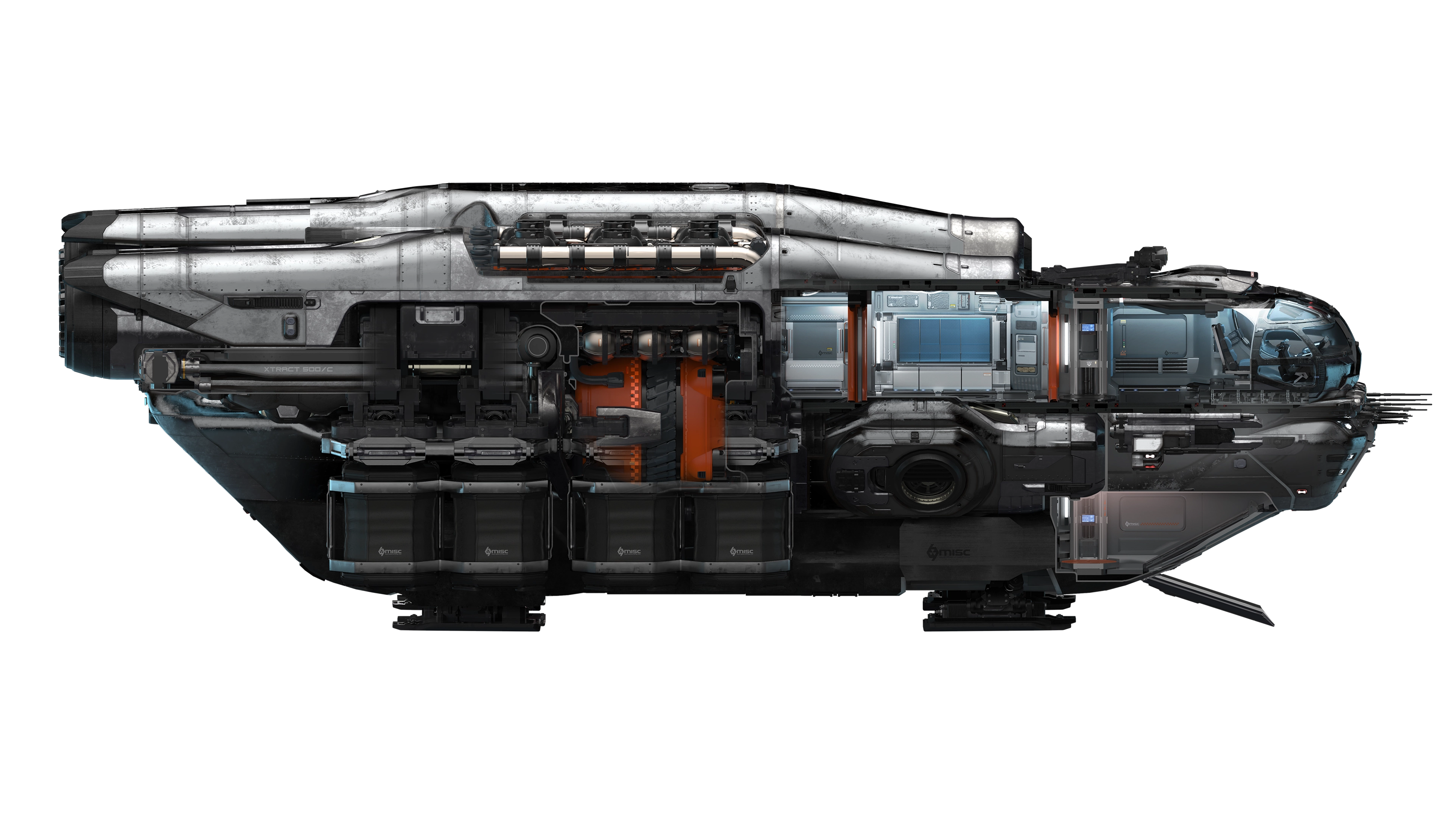 Ideal in Kombination mit Bergbaufahrzeugen wie der MISC Prospector und/oder Frachtschiffen wie der MISC Hull A glänzt die Expanse als wichtiger Bestandteil eines organisierten Bergbauteams.